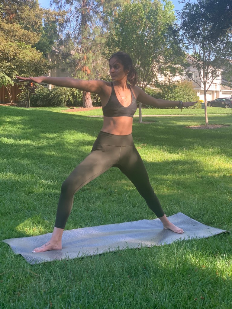 Send your arms in opposite directions and gaze over your front finger tips. Stack your front knee over your front ankle and track it towards your pinky toe to open your hips. Push back in the back edge of your back foot. Stack your shoulders directly over your hips and keep your core locked. Point your back toes towards the side or slightly and diagonally forward.
